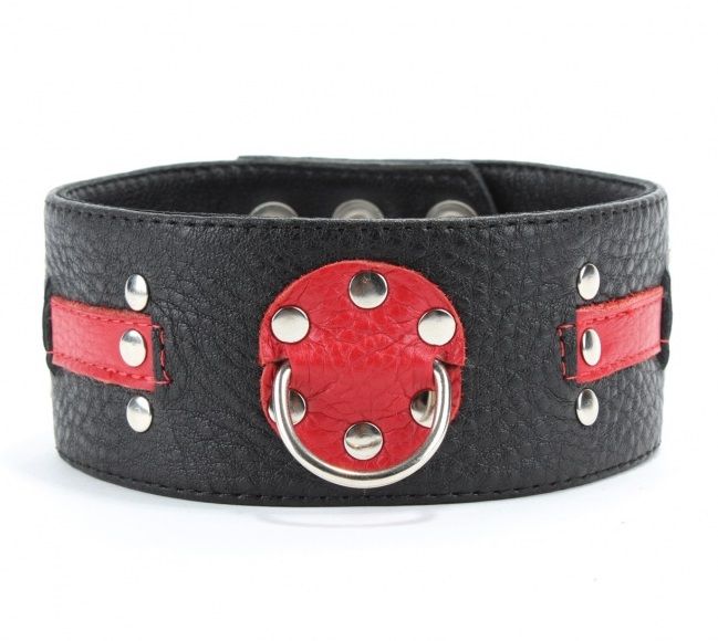 Чёрно-красный ошейник с клёпками.