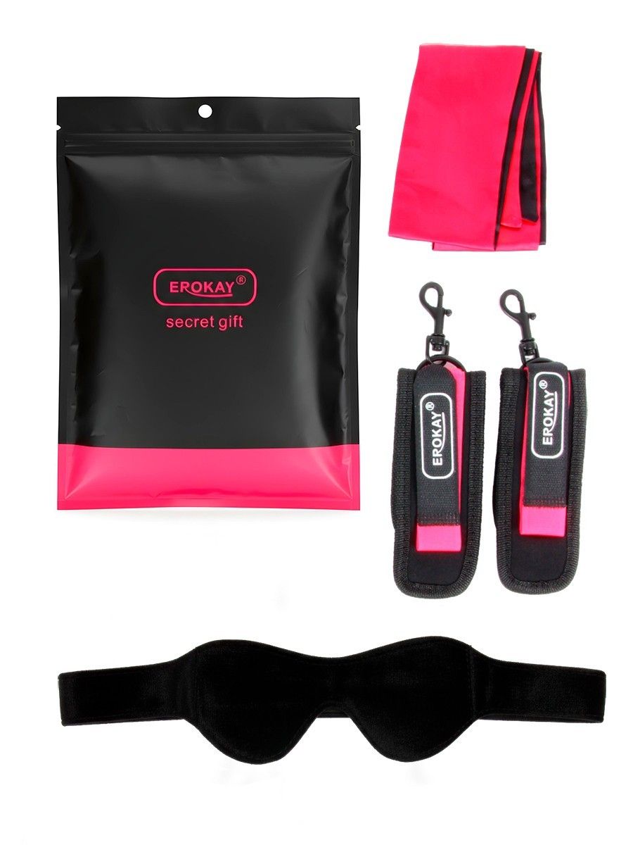 Черно-розовый эротический набор: маска, наручники и повязка. Устройте незабываемый вечер! В комплекте: маска, наручники и повязка.