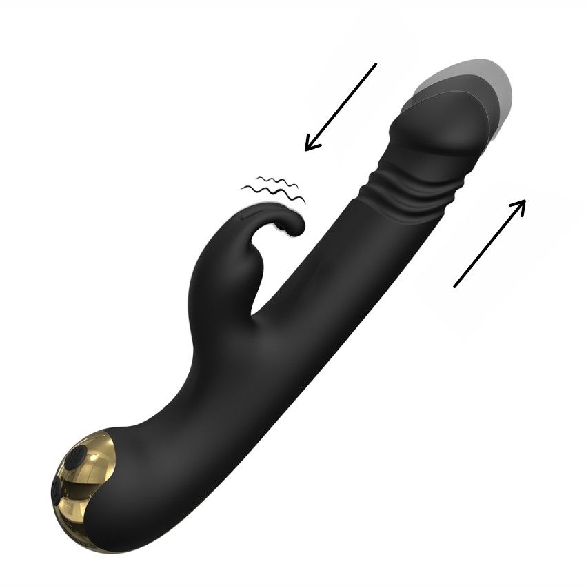 Оригинальный вибромассажёр с вибрацией и возвратно-поступательными движениями внесёт яркость и разнообразие в интимную жизнь одинокой дамы или пары. 9 режимов вибрации, 9 режимов возвратно-поступательных движений. Может использоваться для прелюдии или усилить удовольствие во время секса. Разнообразные режимы вибрации и возвратно-поступательных движений повысят уровень наслаждения. Специальный отросток в виде кролика будет стимулировать клитор. Интимный аксессуар оснащён двумя виброэлементами, что позволяет ощущать вибрацию по всей поверхности. Один виброэлемент находится в стволе, другой - в небольшом отростке-кролике. Вибромассажёр изготовлен из мягкого приятного на ощупь материала. Прост в использовании и уходе. Управление возвратно-поступательными движениями Включение/выключение: нажать и несколько секунд удерживать кнопку «вкл./выкл.» на корпусе изделия. Должен загореться/погаснуть световой индикатор и прозвучать звуковой сигнал. Включение/переключение режимов возвратно-поступательных движений: краткое нажатие той же кнопки. Выключение возвратно-поступательных движений: пролистнуть все режимы до выключения нажать и несколько секунд удерживать кнопку «вкл./выкл.». Управление вибрацией Включение/переключение режимов вибрации: краткое нажатие соответствующей кнопки. Вибрация работает одновременно в стволе и специальном отростке. Выключение вибрации: пролистнуть все режимы до выключения нажать и несколько секунд удерживать кнопку «вкл./выкл.». Вибрацию и возвратно-поступательные движения можно включать по отдельности или одновременно. Если включены и вибрация, и возвратно поступательные движения, полностью выключить гаджет можно путём нажатия и удерживания кнопки «вкл./выкл.». Рабочая длина - 12,5 см.